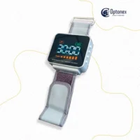 El dispositivo O-ILIB se coloca en la muñeca del paciente como un reloj inteligente. Una vez activado, emite un haz láser controlado que interactúa con el torrente sanguíneo, desencadenando efectos sistémicos de amplio espectro. Su tecnología permite la estimulación de puntos de acupuntura, terapia neural y regeneración de tejidos, haciéndolo versátil para aplicaciones en medicina, fisioterapia y estética.